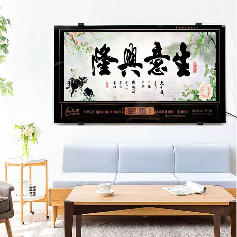 新房客廳裝飾日歷掛鐘,家和風(fēng)景萬(wàn)年歷,超薄七彩燈光更漂亮