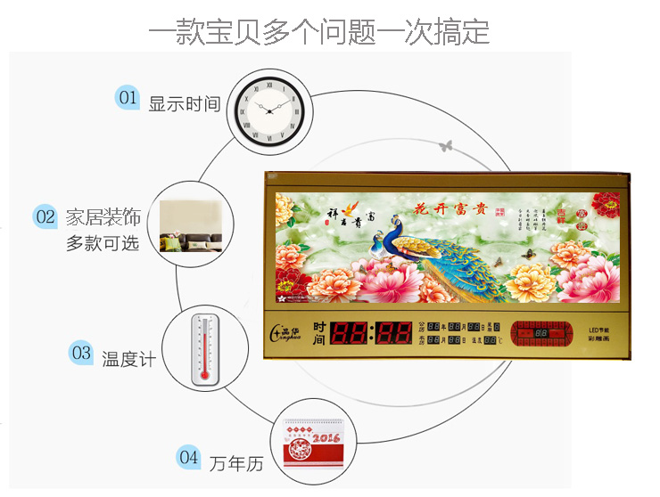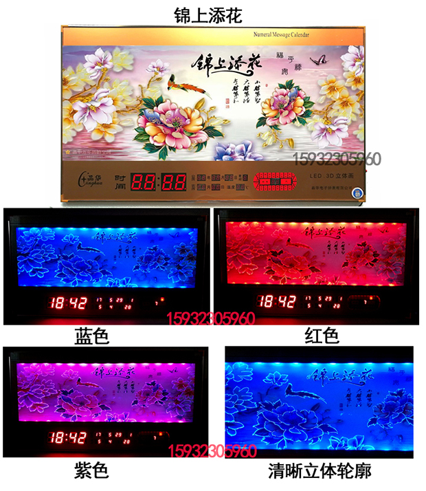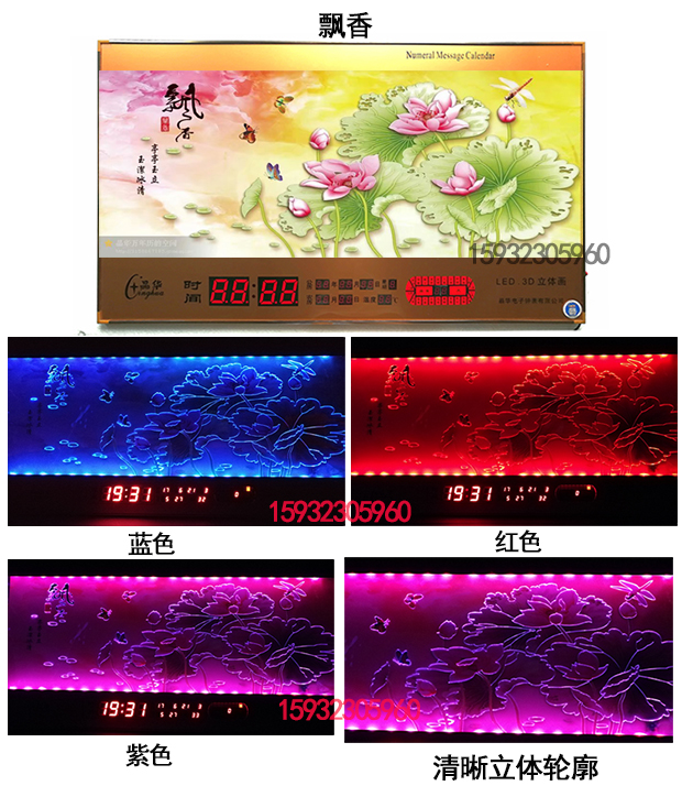 新房客廳裝飾日歷掛鐘,家和風(fēng)景萬(wàn)年歷,超薄七彩燈光更漂亮